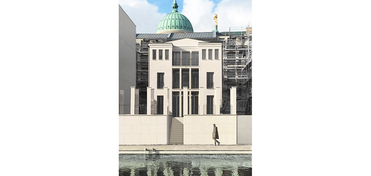 Le due case si trovano nello stesso lotto di un isolato recentemente ricostruito nel centro storico di Potsdam: la casa di città affacciata sul Mercato Vecchio, la villa urbana affacciata sulla riva della Havel. Il Masterplan per la ricostruzione del centro storico di Potsdam aveva fissato la posizione, il volume e la funzione di ciascuna casa; a disposizione dell’architetto restava la facciata e la distribuzione degli spazi interni.