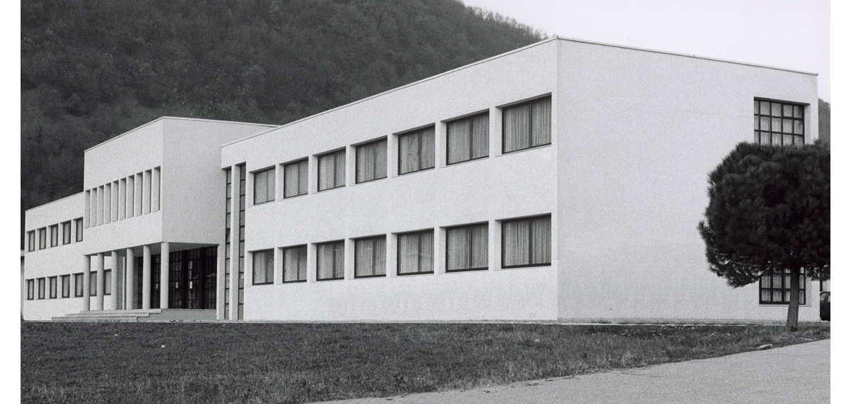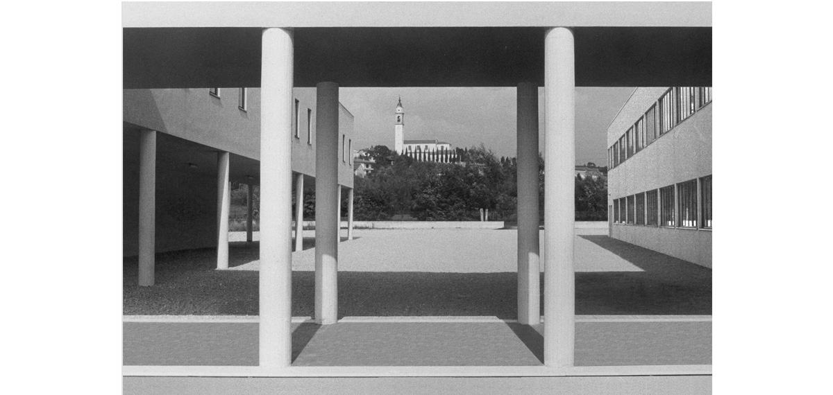 I cinque edifici scolastici qui presentati sono stati progettati e costruiti nel corso degli anni Settanta: quelli di Orgiano e Piovene sono stati completati alla fine degli anni Ottanta, quello di Longare è rimasto solo parzialmente costruito, quelli di Sarcedo e Piovene sono stati in seguito gravemente alterati. L’architettura dell’edificio è sempre pensata in relazione con il progetto di una possibile piazza, di fatto mai realizzata.