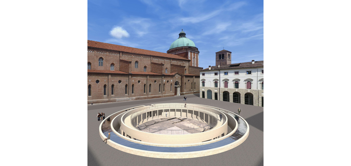Der Entwurf bezieht sich auf den Ort der runden vorhandenen Blumenbeete inmitten der Piazza Duomo in Vicenza. Der auf der Höhe der römischen Stadt, etwa drei Meter unter des Straßenniveau liegende archäologische Platz ist als urbanes Eingangstor zu den wichtigen angrenzenden archäologischen Ausgrabungen konzipiert, insbesondere zu denen unter der Kathedrale, und zum Kryptoportikus eines alt-römischen Domus.
